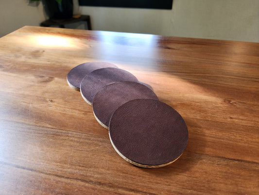 Leather Drink Coaster - Brown - Set of 4